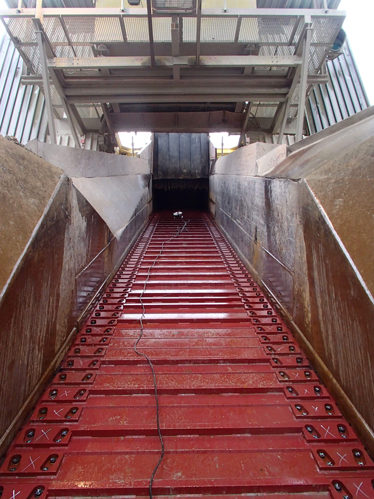 The modernization strategy focused on replacing wear-intensive components while retaining major structural elements wherever possible. Newly designed single-pan apron plates with integrated sealing lips prevent material leakage, protect downstream equipment and significantly reduce wear. Plate thicknesses between 10 and 30 mm ensure high resistance against impact and abrasion.